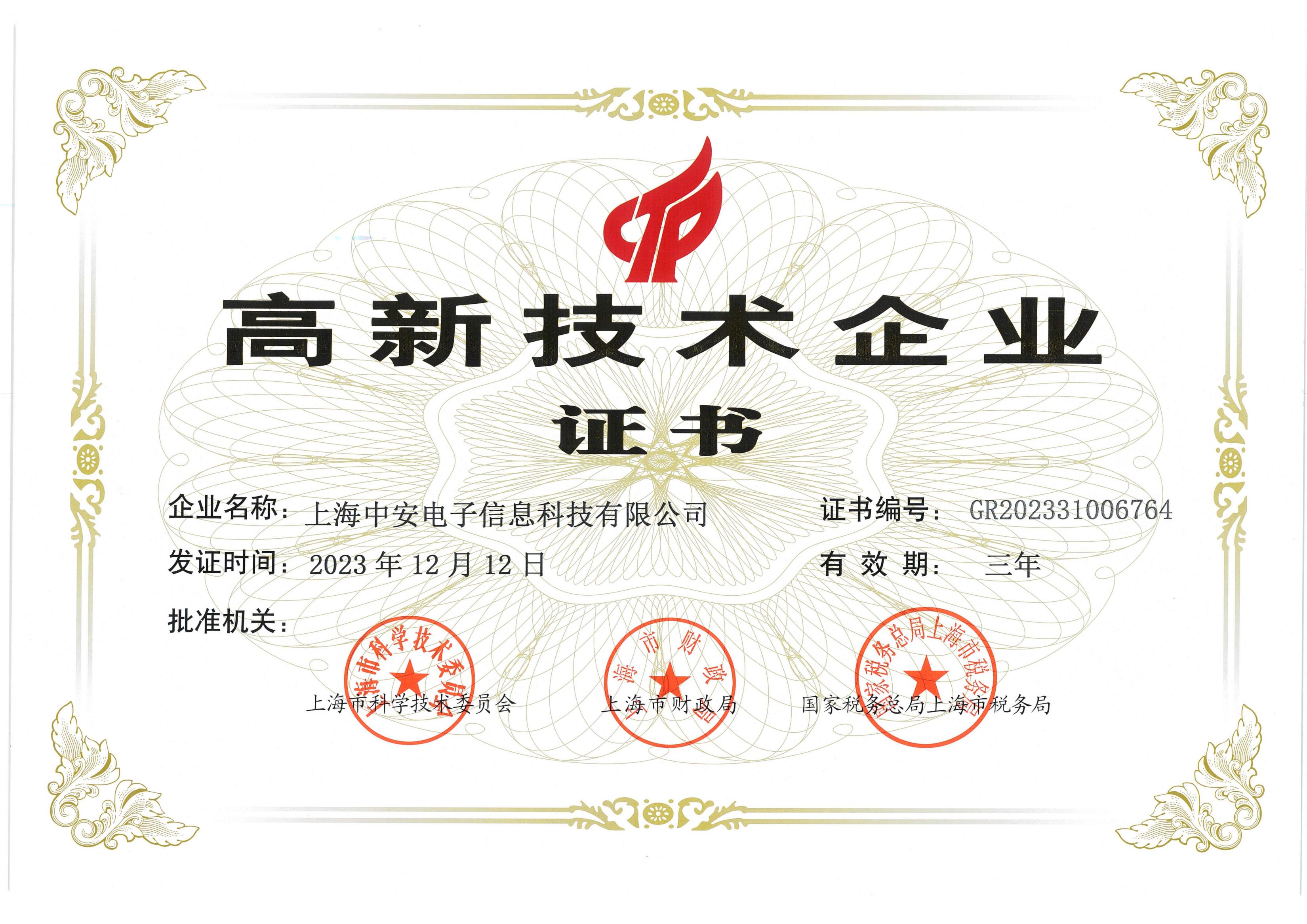 中安科技再獲“高新技術企業(yè)”認定!(2024/03/04)